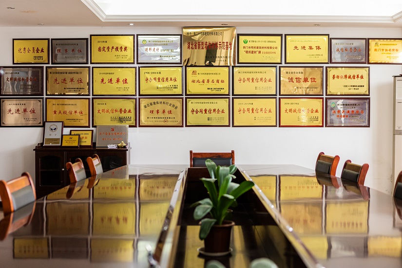 “明邦”商標(biāo)被認(rèn)定為“湖北省著名商標(biāo)”,同時(shí)被評(píng)定為“湖北名牌”產(chǎn)品,企業(yè)同時(shí)被評(píng)定為“湖北省重合同守信用企業(yè)”、“湖北省新型墻材產(chǎn)業(yè)化示范基地”和“荊門市循環(huán)經(jīng)濟(jì)示范企業(yè)”,公司通過(guò)了“綠色建材評(píng)價(jià)標(biāo)識(shí)證書”、“GB/T 45001-2020職業(yè)健康安全管理體系認(rèn)證證書”、“GB/T 19001-2016質(zhì)量管理體系認(rèn)證”、“GB/T 24001-2016環(huán)境管理體系認(rèn)證證書”。